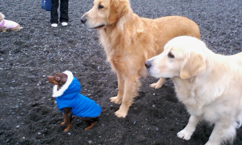 もちろん、ゴールデンずは寒くたってへっちゃら。ちょこらンも重ね着をして一緒になって遊びます。