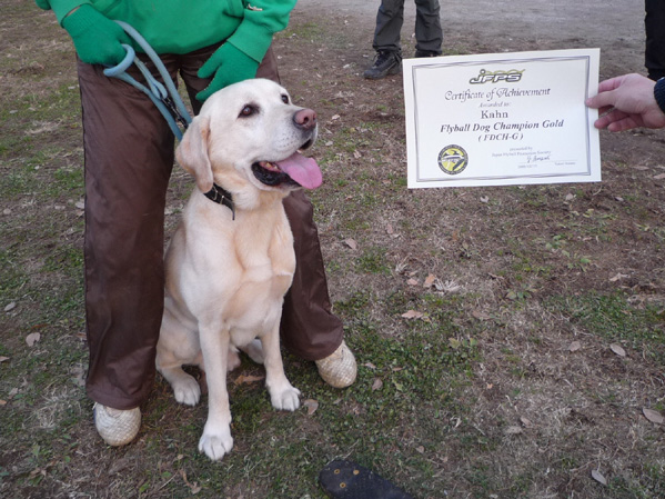 この前の秋ヶ瀬大会でFDCH-G(2500P獲得)の賞状をいただいた、スーパースターターワンコです。
