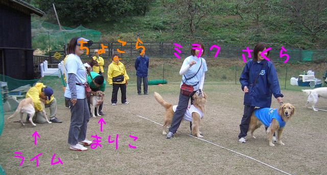ちょこらンの入ってるチームTUNAMIは、ゴールデンのさくらちゃん、ミラクちゃんと ちょこらンの3頭しかいないので、今回もピーナッツフライボールドッグクラブのライムちゃんまりこちゃんと合同でオープンクラスでの参加でした。