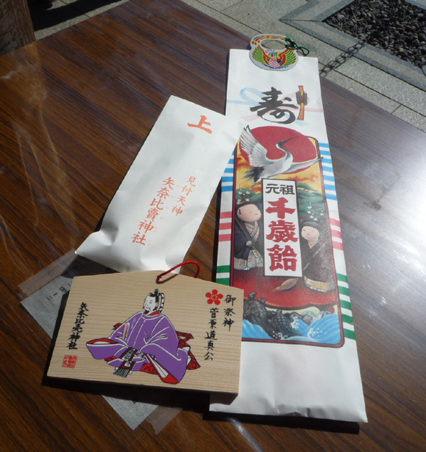 お守りと、絵馬と、千歳あめを買って、