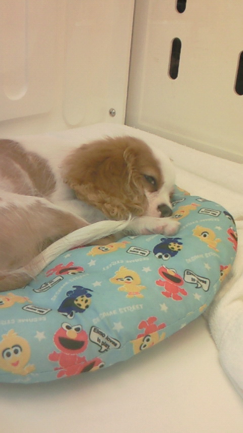 (キャバリア犬種は90%以上の確率で心臓疾患を発症するそうで、この仔の場合はそれが早くに見つかったのだそうです。)
