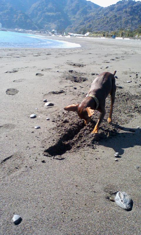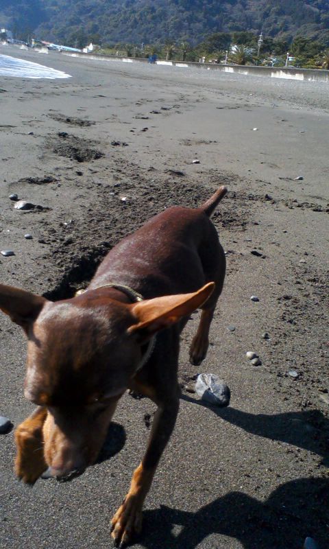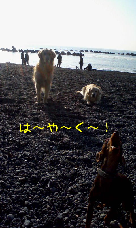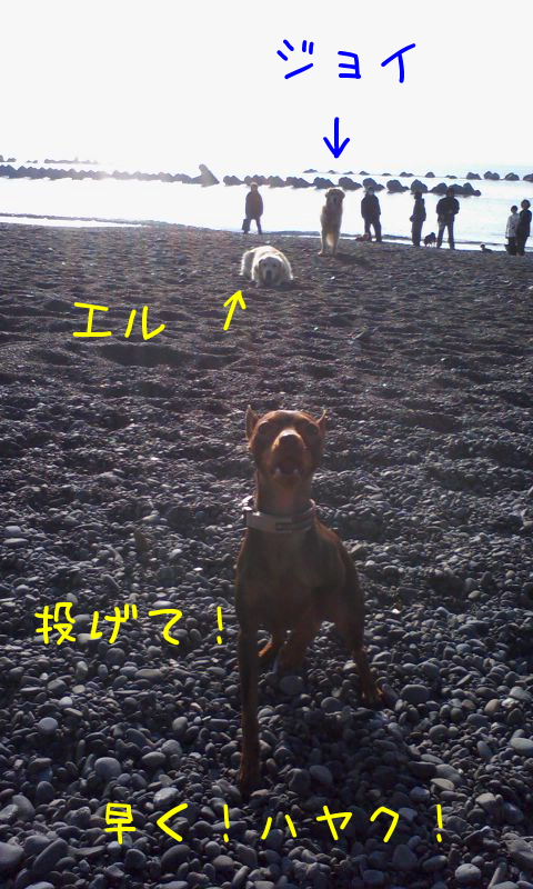 今朝もエルジョイちゃん(GR)と海岸でいっぱい遊びました。