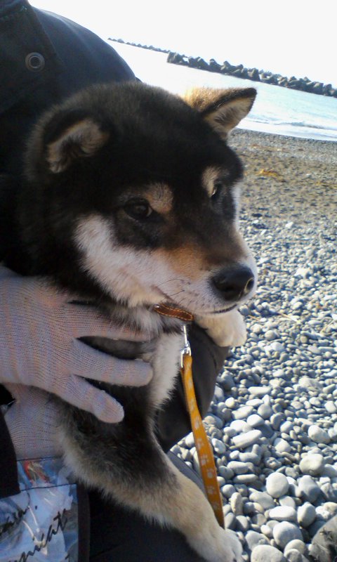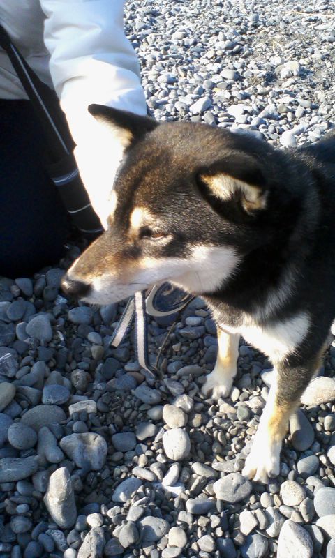 このごろ黒柴の富士くん(6ヶ月)が朝の海岸あそびに仲間入りしました。