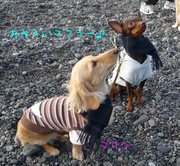 なが~いドライブから帰り着いてもまだ早い時間。雪の世界とはやっぱり違う空気に、少しほっとして、またミラたんと海岸をお散歩しました。