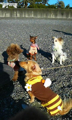 「初めてのところで初めてのお友達がいっぱーい&初めての怪しいおばちゃんたちが僕のリード持つし、やたらに触りまくるし、おやつくれるから許すけど、いったい何なの~?」って言ってました。と、思う。。。
