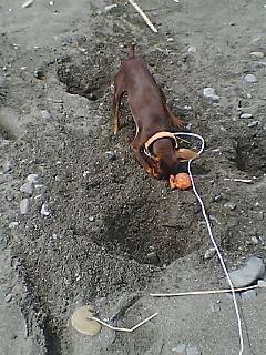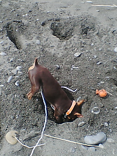 ママが行方不明の仔を気にしてキョロキョロしていると、ちょこらは穴を掘りだして、一人で上手に遊んでいました。