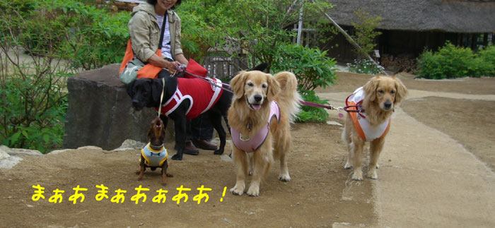 無事にビニル袋を捕まえて戻ると、お友達のワンひとりがママが止めるのも聞かず臭いものを体にこすり付けたからとしかられていました。そうこうしているうちに、ワン一人でおうちに帰ってしまったらしく、行方不明の仔が。。。