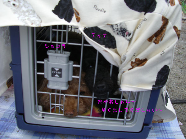 ムリさせてはいけないので、ほとんどの時間クレートインで待たせました。(ご褒美ももらえないしね。)