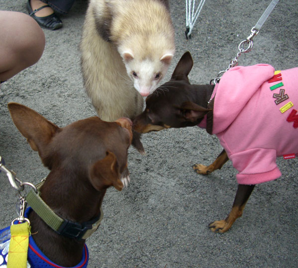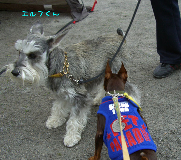 応援に来ていた(?)ミニピンちゃんはダウンコートを着ているほど寒かったのに、ちょこらにはメッシュのタンクトップ(日よけ)とレインコートしか持ってなくて、かわいそうでした。