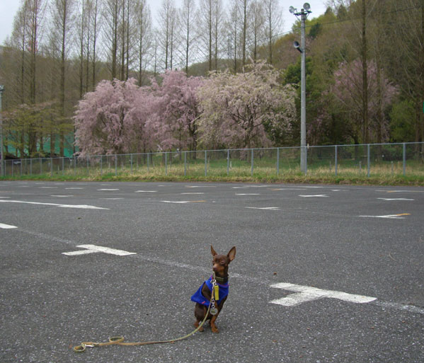 ←トイレに行くまでの駐車場にて 辺りは桜の木が立ち並びきれいでした。