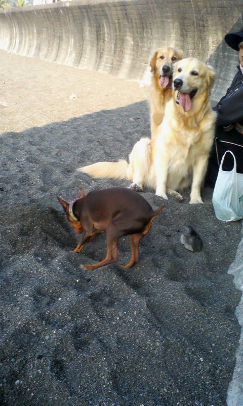 朝、若が学校に行く時とか、ママがゴミ出しのとき、ついでにちょこっと海岸に下りたりしてます。