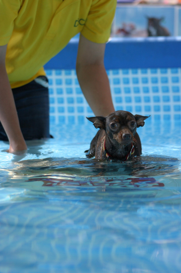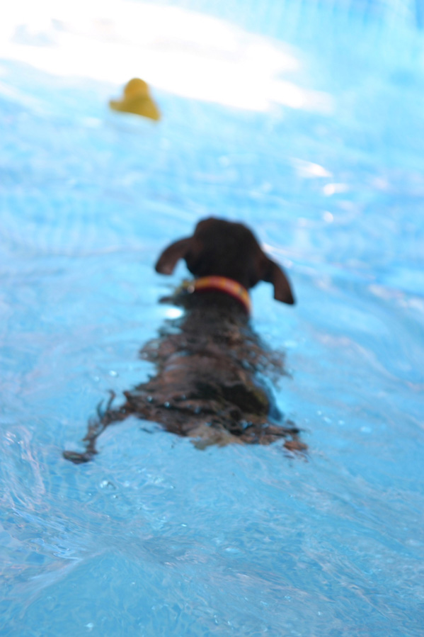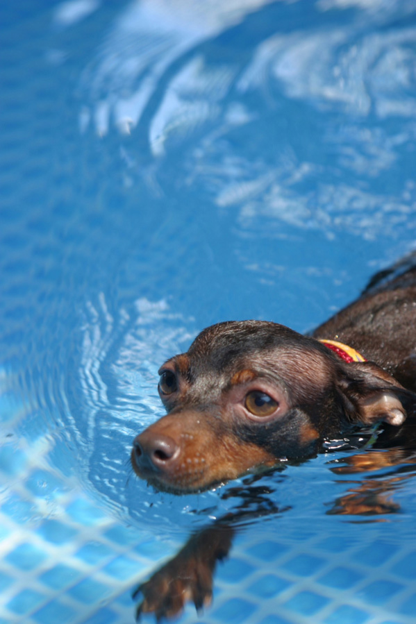 のんのんちゃん(たぶんちわわちゃん)と一緒に競争してみたけれど、ちょこらンはよそ見をしたり、余計にまわってみたりで、笑いを取っただけで負けでしたー。あとからジャックちゃん、プードルちゃん、コーギーちゃん、ポメちゃんがわさわさと遊びに見えてましたが、ちょこらンはその前にいっぱい泳いだので、帰ることにしました。