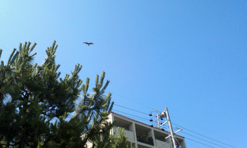 カラスがいなくなってちょこらンを放すと、今度はとんびがドコからともなく現れ、真上を旋回しだし、だんだん下りて来ました。どんどん近寄ってくるのでちょこらンを捕獲し、抱っこして隠しました。