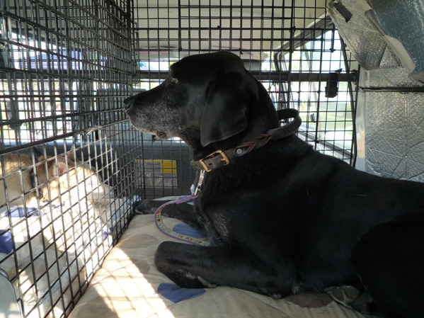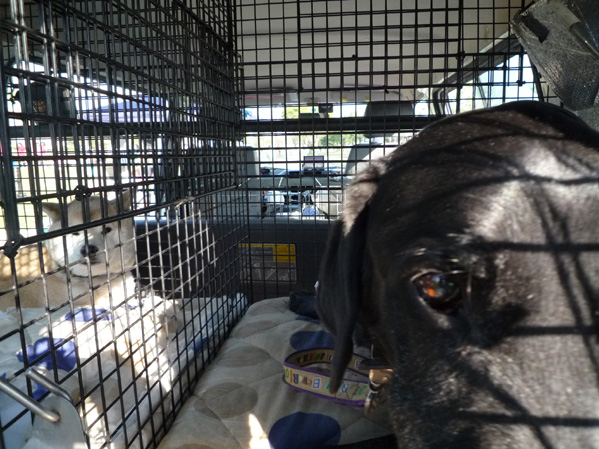 ちょっとだけ歩いてトイレを済ませてクレートに入れて