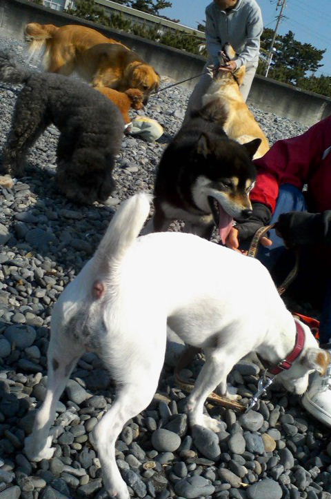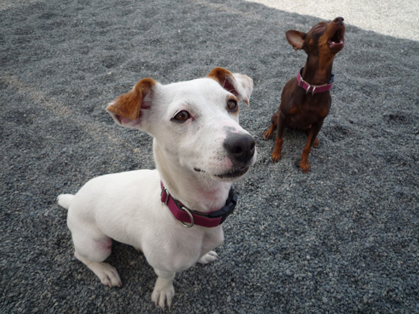 ランでは元気に走り回り、大きなワンコにはおなかを見せ、みんなにかわいがっていただきました。