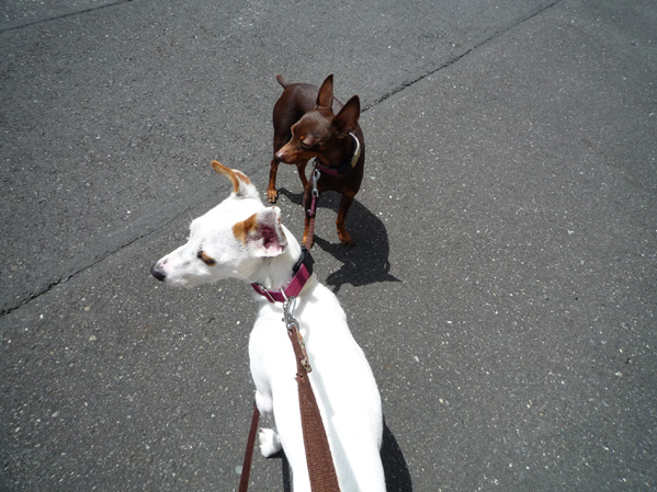 ←こちらの2人も慣れてきて、短い散歩なら同時に行っても、対処できるようになりました。