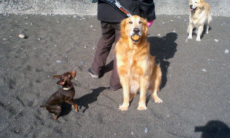 となりの広場では、子供たちの公式戦らしきサッカーの大会が行われていて、ボールを蹴る音や、飛行場からの飛行機の飛び交う音、工場の音、海の音、船の音など、ワンコたちには刺激音が多かったと思いますが、