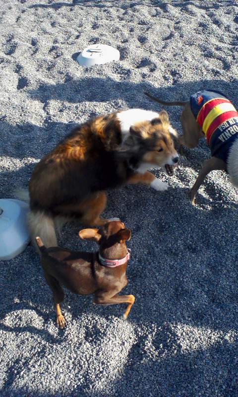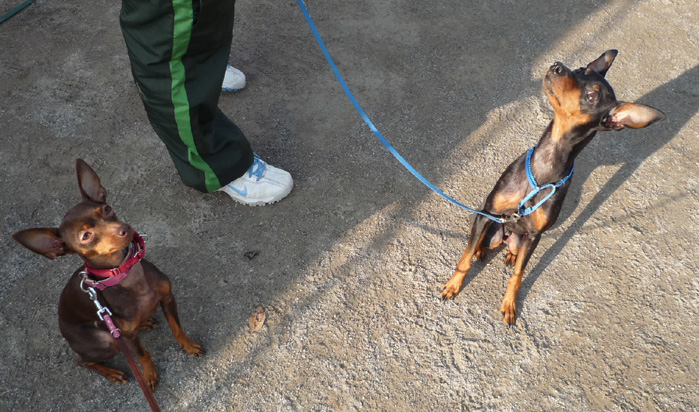 写真は、イタグレのアルトくんがシェルティちゃんにしつこいわねって怒られてるところに居合わせたちょこらン。