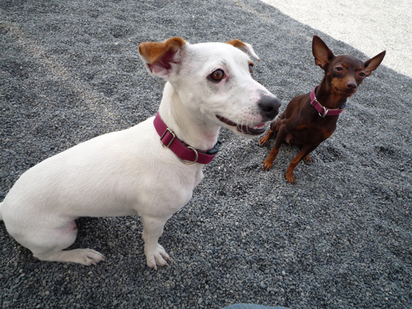 ←こちらの2人も慣れてきて、短い散歩なら同時に行っても、対処できるようになりました。